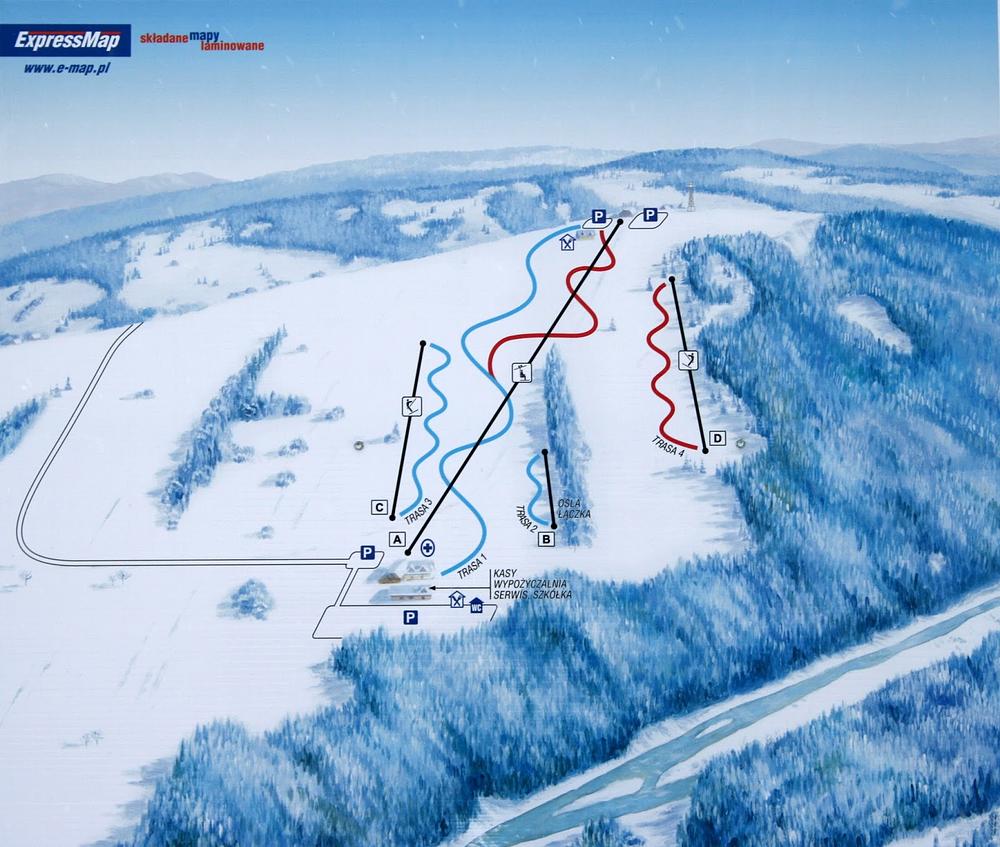 Grapa SKI Czarna Góra is a ski resort located in the Lesser Poland Voivodeship, Poland. It offers 7 trails with a total length of 4.6 km, including a longest run of 1 km. The resort has 4 lifts, including a 4-seater chairlift, and a vertical drop of 146m. The ski area is situated between 736m and 883m above sea level.