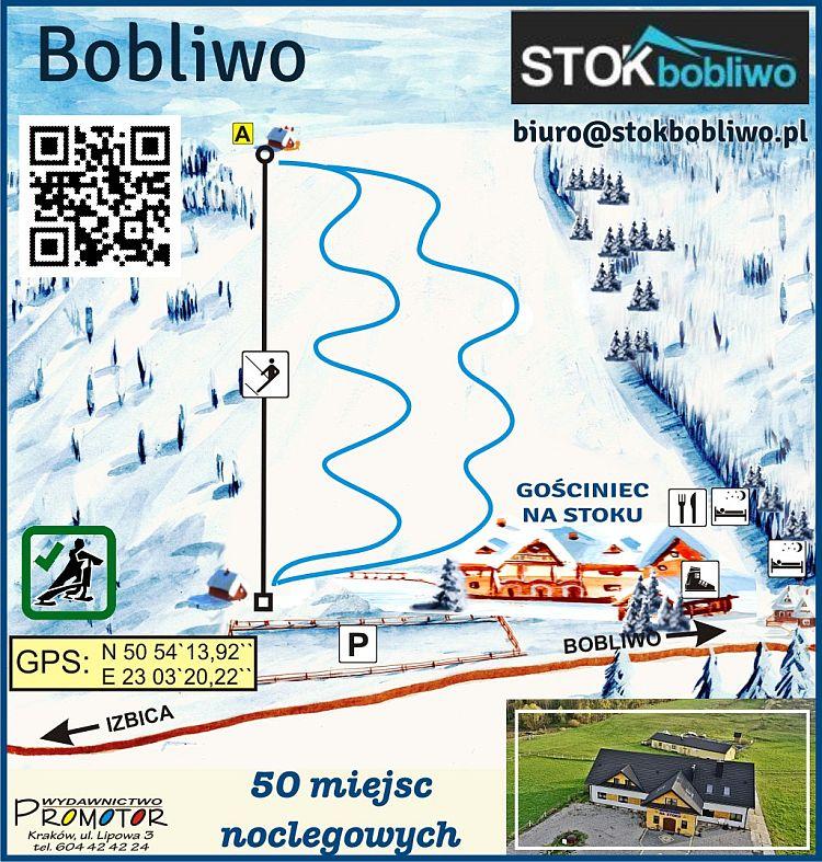 Here's a 50-100 word summary of Stok Bobliwo ski resort: Stok Bobliwo is a ski resort located in Poland, specifically in the Lublin Voivodeship. The resort features a professional ski lift, the longest in the region, suitable for both experienced and beginner skiers. The slopes are artificially snow-covered, providing a reliable skiing experience. The resort is situated 0.7 kilometers from the village center and offers 1.4 kilometers of skiing and snowboarding terrain. Stok Bobliwo is a great option for those looking for a convenient and accessible skiing experience in Poland.