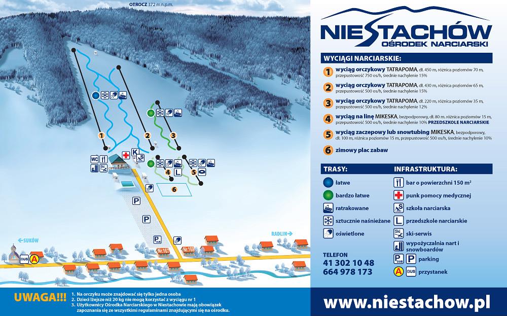 Niestachów Ski Resort in Poland offers a family-friendly skiing experience with 4-hectare slopes, suitable for all skill levels. The resort features a 450-meter long TATRAPOMA chairlift, a ski school, and rentals. The slopes are wide and gentle, making it an ideal destination for families and beginners. The resort is open on Wednesdays from 10:00 to 20:00, with other days subject to weather conditions.