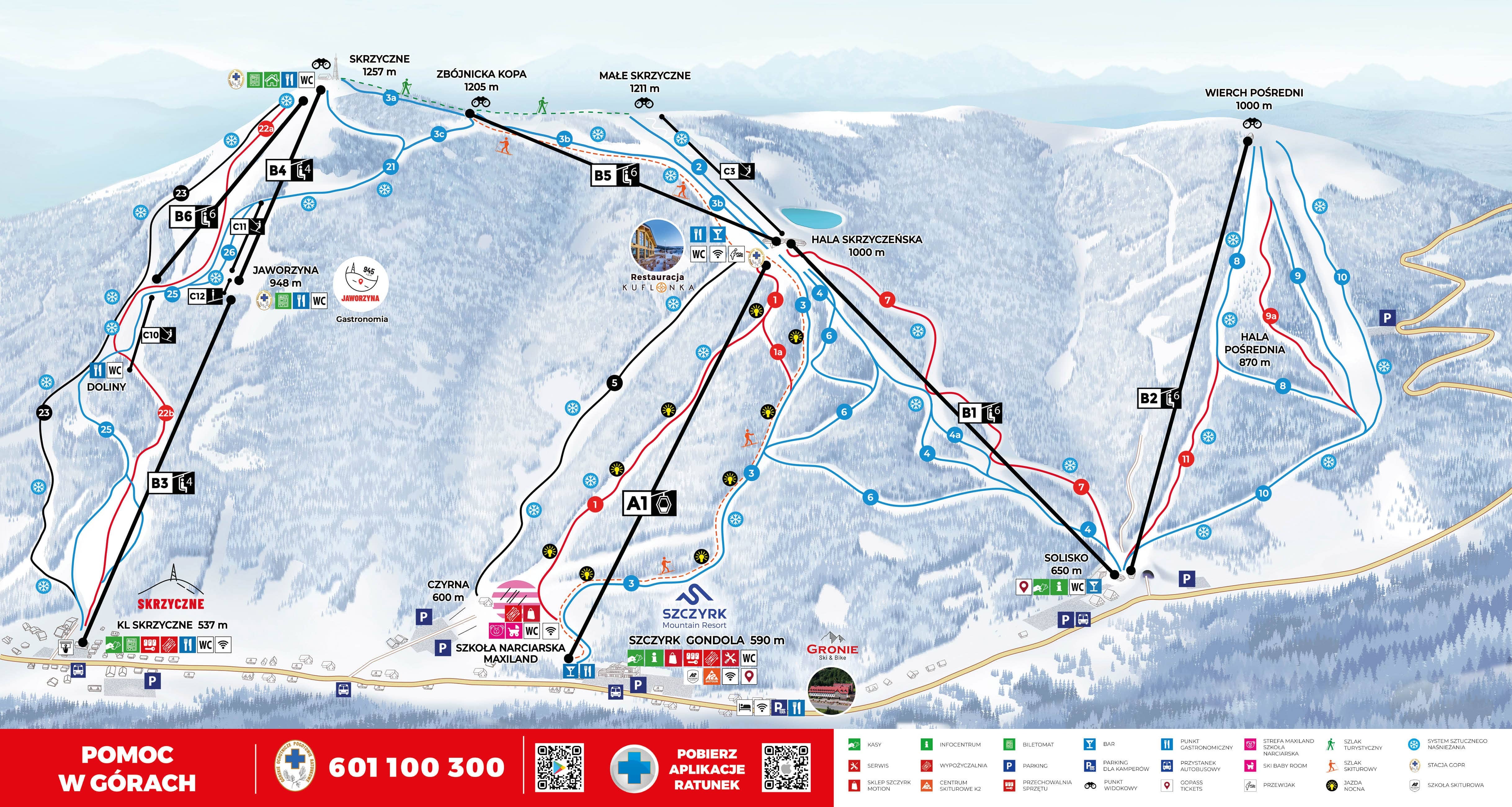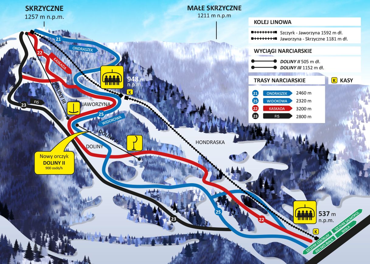 COS Szczyrk is a large ski resort in Poland, located in the Beskid Śląski mountain range. It features over 23 km of slopes, including five floodlit pistes, and a 10-person gondola lift and two 6-person chairlifts. The resort also has a large artificial snow-making system and a joint ski pass with the Beskid Sport Arena and the Polish Central Sport Centre. With a variety of slopes for all difficulty levels, COS Szczyrk is a great destination for skiers and snowboarders.
