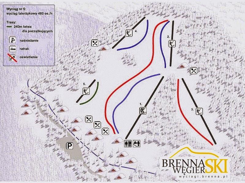 Węgierski is a ski resort located in Brenna, Silesian Voivodeship, Poland. It offers 6.8 km of slopes for skiing and snowboarding, with 5 lifts available. The resort is situated in the Beskid Śląski region, near the village of Brenna. Węgierski is one of the main ski areas in the Brenna region, along with Stary Groń – Brenna and Dolina Leśnicy/Świniorki – Brenna Leśnica.
