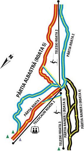 Pârtiile Roata is a ski resort located in Cavnic, Romania. It offers 6.3 km of slopes with a total of 7 pistes, including a beginner's slope, 2 medium-difficulty slopes, and a 2.1 km long advanced slope. The resort has a total of 3 lifts, including a mountain cable car. The ski area is situated between elevations of 950m and 1260m, with an average incline of 24%. The resort also offers a ski school with lessons for both skiing and snowboarding.