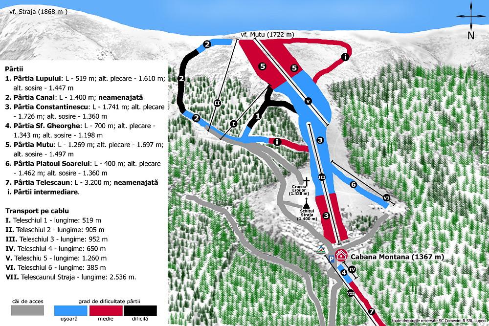 Straja is a ski resort located in the Vâlcan Mountains of Romania, offering 12 slopes for beginners and advanced skiers, with 7 lifts and 26 km of piste. The resort has a range of facilities, including night skiing, sledding, and hiking in the summer. With an elevation of 1,440m, Straja provides a variety of skiing options for all levels, and is a popular destination for winter sports enthusiasts.