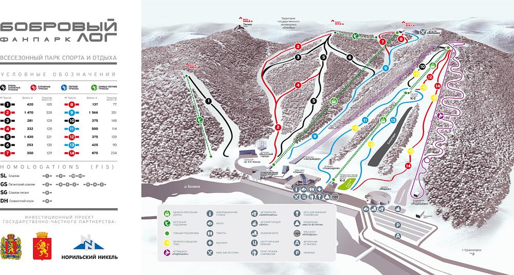 Here's a 50-100 word summary of Фанпарк Бобровый лог (Fanpark Bobrovy Log): Located in Krasnoyarsk, Russia, Fanpark Bobrovy Log is a modern ski resort that offers a variety of winter activities, including alpine skiing, snowboarding, and chairlift rides. In the summer, visitors can enjoy other activities such as swimming and walking. The resort has 8 trails certified by the FIS Technical Committee, making it a good training facility. With a height difference of 20 meters and a base station at 497 meters, the resort is suitable for all skill levels. It also features a rope tow and baby lift for beginners.