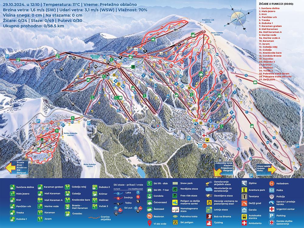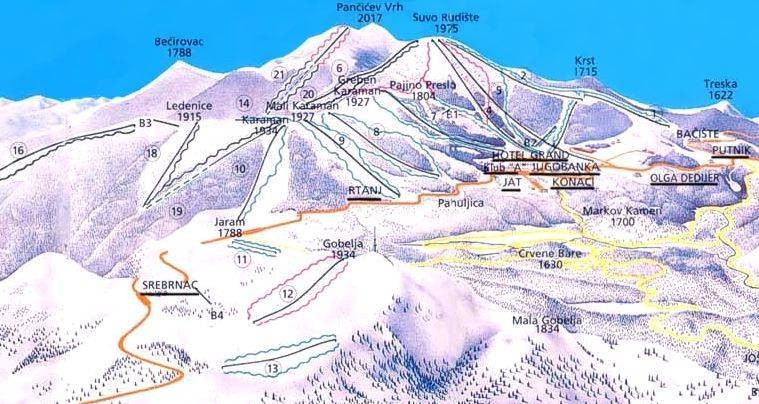 Kopaonik is a major ski resort in Serbia, situated in the heart of Kopaonik National Park. It's the largest mountain range in Serbia, stretching 80 km from northwest to southeast, and offers 25 ski lifts with a capacity of 32,000 skiers per hour. The resort provides a variety of activities, including skiing, snowboarding, and tennis, with 4.5-star reviews praising its abundant slopes, nice maintenance, and amazing snow conditions in December.
