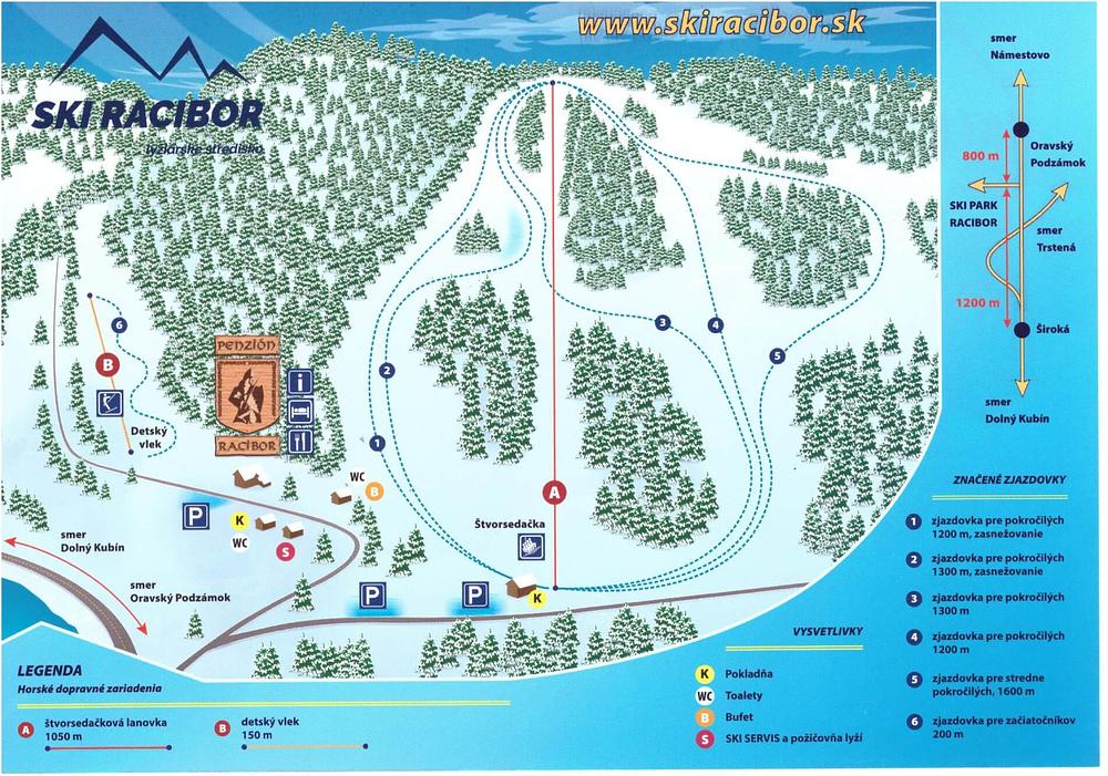 Racibor is a ski resort located in Oravský Podzámok, Slovakia, offering 7 km of slopes for skiing and snowboarding. The resort features a 4-seater chairlift, ski-servis, and a ski school with lessons for children and beginners. It also offers bežecké lyžovanie (cross-country skiing) and has a webcam for live updates. The resort is situated near the Oravský castle and offers stunning views of the surrounding mountains.