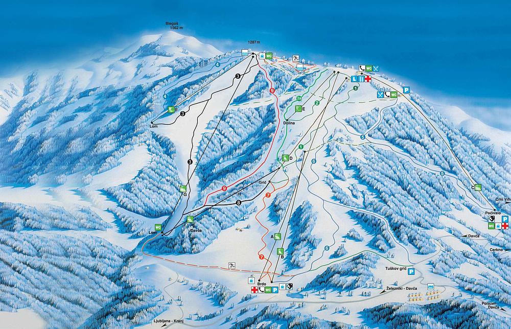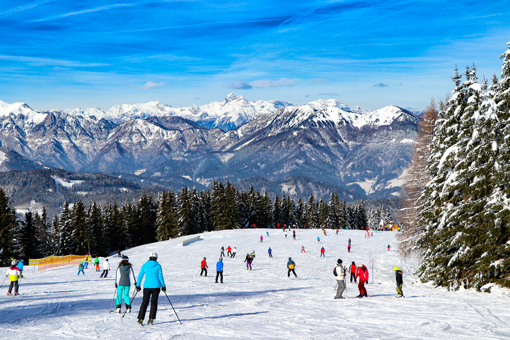 Cerkno is a ski resort in Slovenia, located in the Gorenjska region, offering 18 km of groomed ski slopes and terrain parks for all skill levels. It features modern and safest ski facilities, including fast lifts, and is suitable for families. The resort offers a variety of activities, including skiing, sledding, and summer activities, with lovely views of the surrounding mountains. Cerkno has been awarded as the best Slovenian ski resort in 2010/11 and is a popular destination for winter sports enthusiasts.