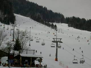 Kranjska Gora is a popular ski resort in Slovenia, located in the Julian Alps. It's the country's oldest ski resort, opened in 1948, and features 18 ski slopes of varying difficulty, as well as a snowboard park and a kids' playground. The resort is situated in the Vitranc Mountain valley and offers a range of amenities, including restaurants, shops, and spas. With 20 kilometers of pistes, Kranjska Gora is a great destination for families and beginners, although intermediate skiers may find the slopes a bit tame.