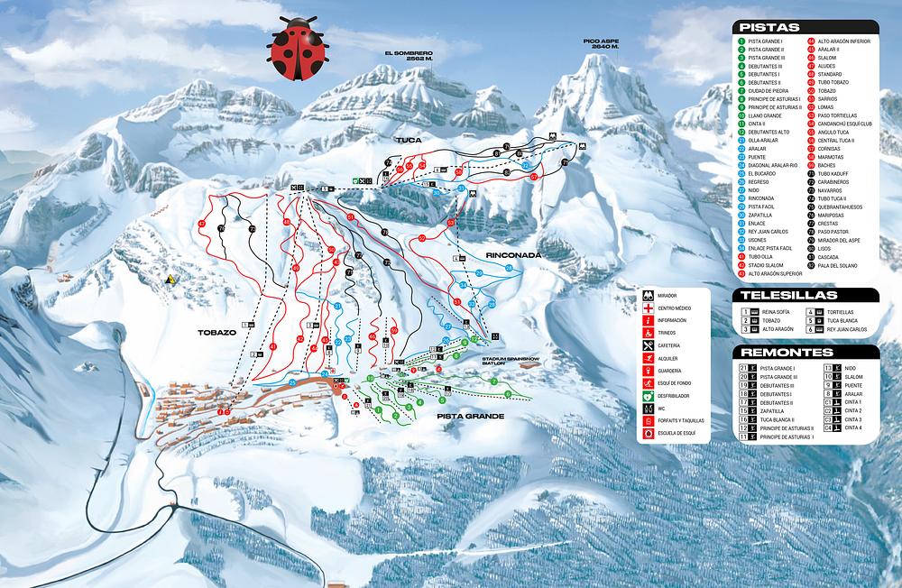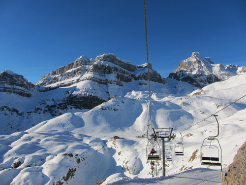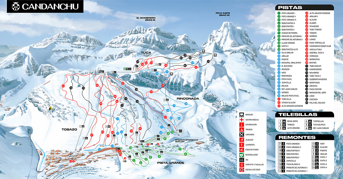 Candanchu is a ski resort in the Aragonese Pyrenees, Spain, situated near the town of Canfranc. It's the oldest ski resort in Spain, established in 1928, and offers a range of slopes for beginners, experts, and apres-ski enthusiasts. With 50 km of slopes and 11.2 km of ski routes, 24 lifts transport guests to an altitude of up to 2400m. The resort has a variety of restaurants, stores, and lodging options, making it a great destination for a winter sports retreat.