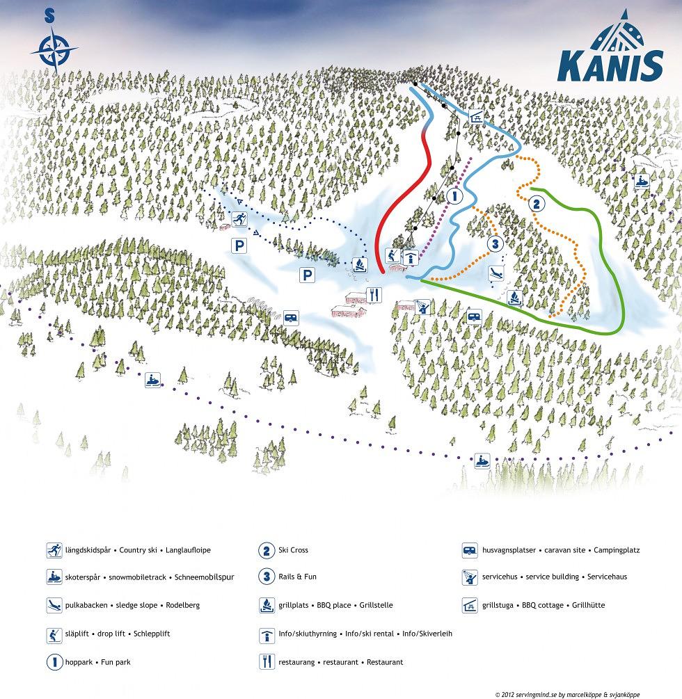 Kanisbacken is a ski resort located in Älvsbyn, Norrbotten County, Sweden. It offers 3 km of slopes for skiing and snowboarding, with a single lift transporting guests. The resort is situated between elevations of 73 meters, making it a relatively small but accessible ski area. The resort is nestled in a forested area next to a river, providing a serene winter sports experience.