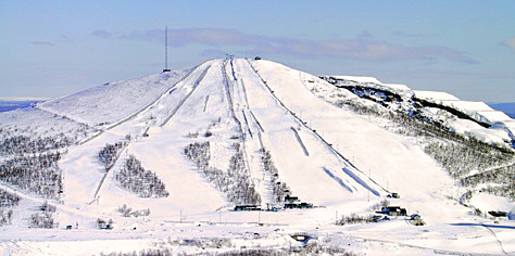 Luossavaarabacken is a ski resort located in Kiruna, Sweden, offering 2.5 km of slopes and 3 lifts. The resort has a vertical drop of 156 meters and four slopes, with opportunities for skiing and snowboarding. It's a popular spot for locals and visitors alike, with a café and evening skiing options. The surrounding landscape provides scenic views of the city and mine.