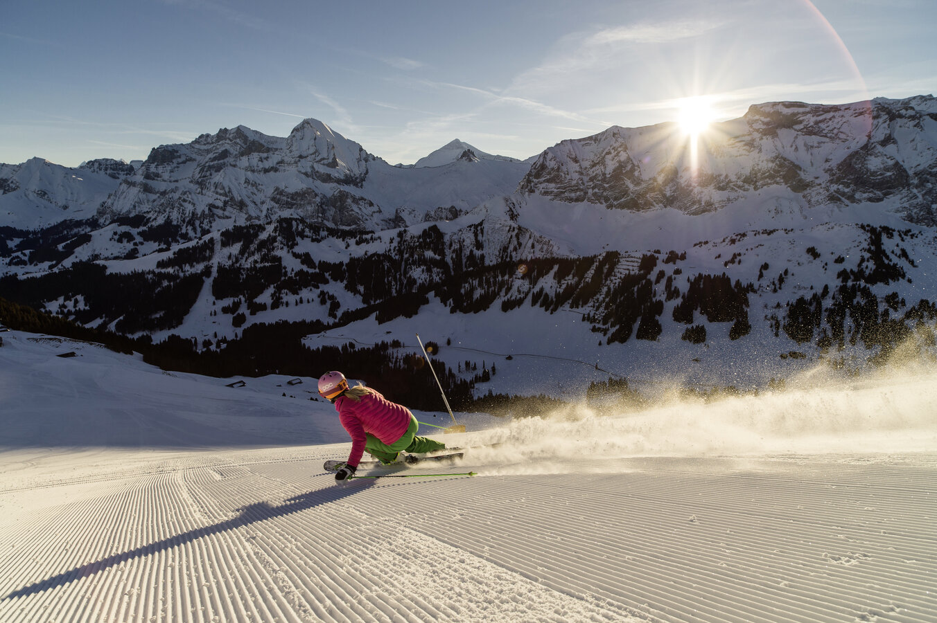 Adelboden - Tschentenalp is a recreation area in Adelboden, Switzerland, offering a range of attractions for visitors. The valley station is situated in the heart of Adelboden, providing easy access to the area. The Tschentenalp features a ski area with 10 km of slopes, a circulating ropeway/gondola lift, and a toboggan park. It's a popular spot for skiing, snowboarding, and mountain biking, with a kids' playground and restaurant on site. The area offers stunning views of the surrounding mountains and valleys, making it a great destination for families and outdoor enthusiasts.