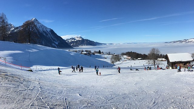 Aeschiallmend is a small, family-friendly ski resort located in Aeschi bei Spiez, Switzerland. It offers a range of winter sports facilities, including 2 ski lifts, 2 training lifts, and 25 km of cross-country skiing trails. The resort provides panoramic views of Lake Thun and is suitable for beginners and families.
