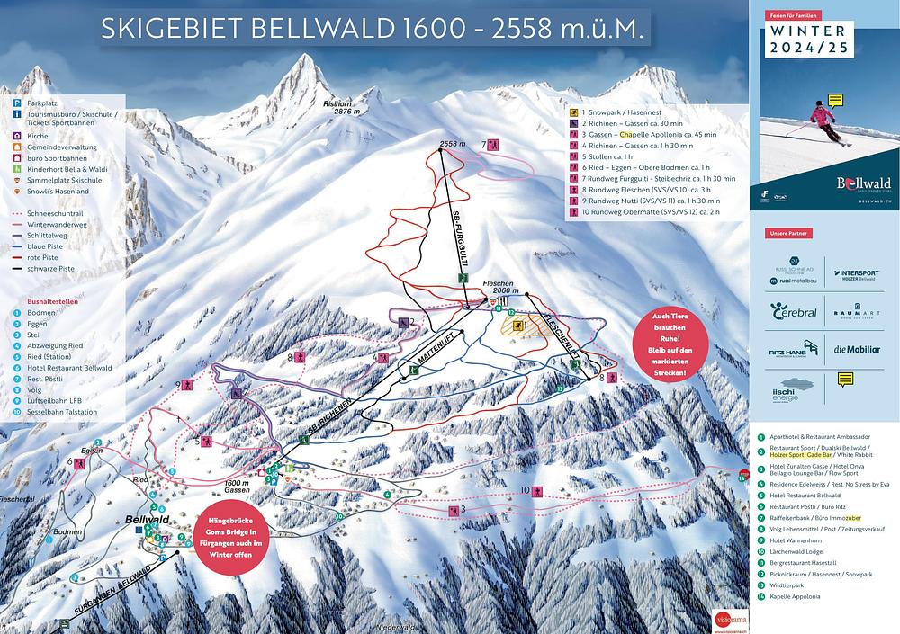 Bellwald is a ski resort in the Swiss Alps, located in the Valais region at an altitude of 1,600 meters. It offers over 35 km of varied pistes, including some with stunning views of the Matterhorn. The resort boasts modern snow-making systems, ensuring snow coverage until spring. With 5 ski lifts and 949 meters of vertical descent, Bellwald is a great destination for intermediates and those seeking a mix of challenging and gentle slopes.