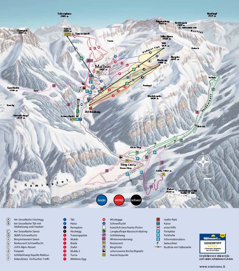 Buchserberg-Malbun is a ski resort located in the Canton of St. Gallen, Switzerland. It offers 15 kilometers of idyllic nature trails for skiing, hiking, and skating. The resort is suitable for families and young children, with affordable prices and a cozy atmosphere. The Berghaus Malbun hotel and restaurant offers comfortable accommodations and fine dining. The resort is accessible by car and has free parking. It's an ideal destination for outdoor enthusiasts, with opportunities for hiking and skiing year-round.