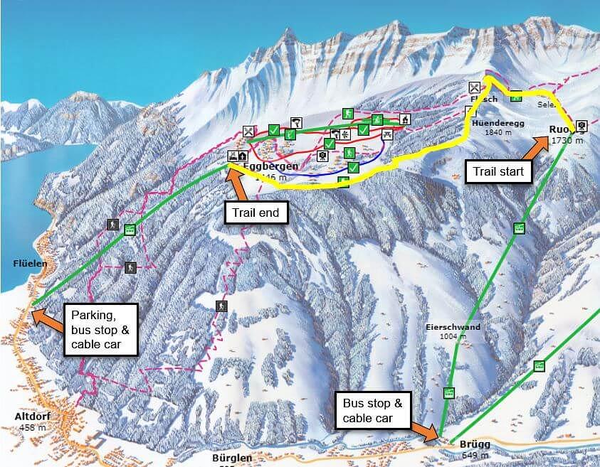 Eggberge is a ski resort located in Altdorf, Switzerland, offering 8 km of diverse slopes for both beginners and experts. The resort boasts a 1254-meter-long ski lift and is situated at an elevation of 1450-1800 meters above sea level. The area is easily accessible via a cable car and features a boutique hotel and restaurant, Berggasthaus Eggberge, which offers stunning views of the surrounding mountains and Urnersee lake.