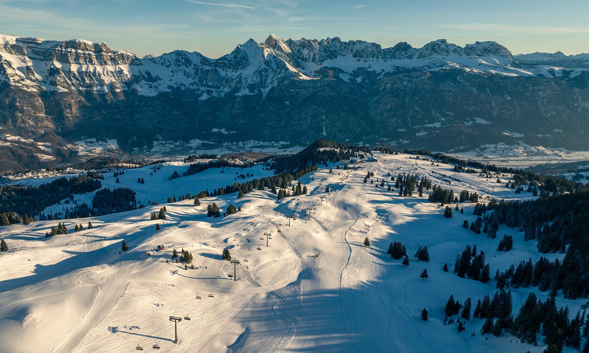 Flumserberg is a popular ski resort in the Swiss Alps, located in the canton of St. Gallen. It offers 65 kilometers of slopes, 17 state-of-the-art lifts, and three funparks, making it a great destination for skiers and snowboarders of all levels. The resort is situated between Zurich and Chur, and can be reached in under 90 minutes from Zurich. Flumserberg has a range of family-friendly activities, including sledging, hiking, and climbing, and offers breathtaking views of the Churfirsten mountain range.