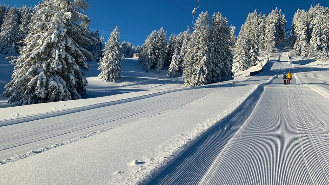 Gatrisch - Selital is a ski resort located in the Naturpark Gantrisch, Switzerland. It offers 70 kilometers of slopes, making it a great destination for families and beginner to intermediate skiers. The resort has a variety of trails, including the longest Riffenmatt trail, and is easily accessible with ample parking. The highest ski resort in the area is Kaiseregg/Riggisalp – Schwarzsee, with a height of 1,751 meters. The Königsloipe trail, a popular cross-country skiing route, begins in Selital and offers stunning views of the Alps.