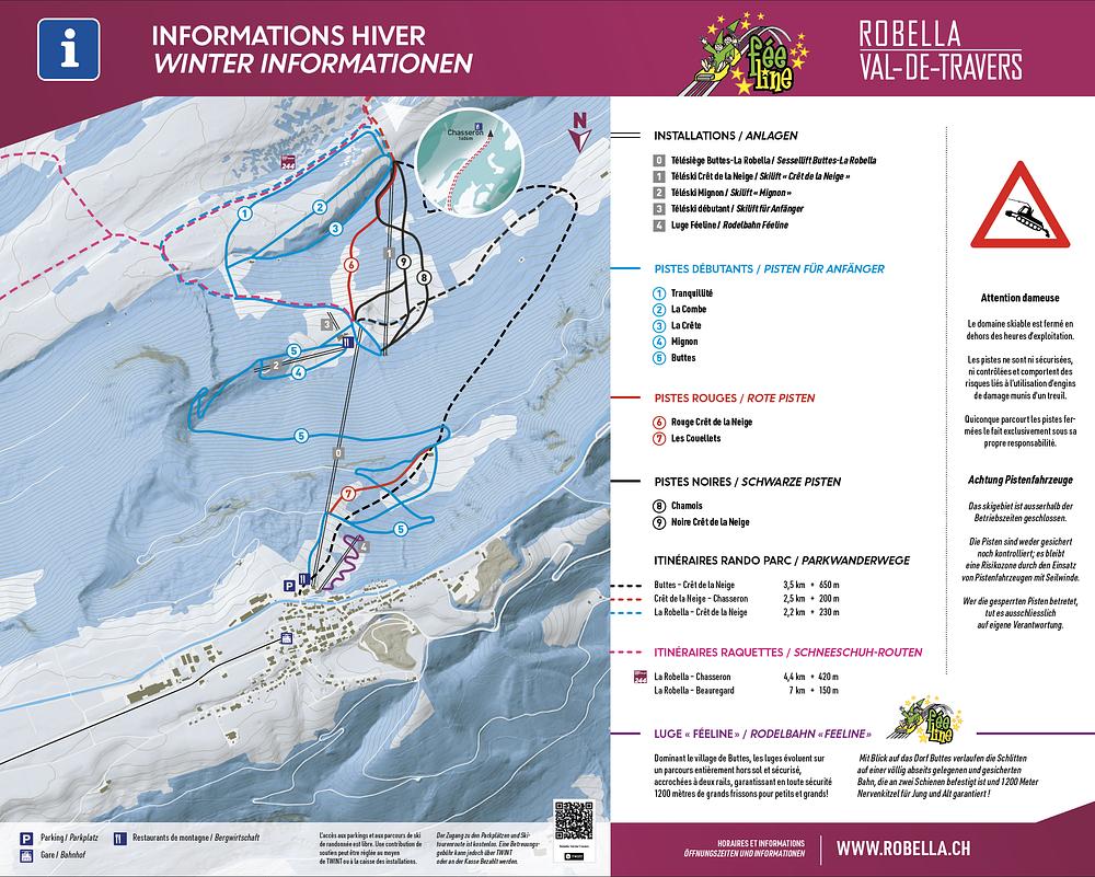 La Robella is a ski resort located in Val-de-Travers, Switzerland, offering a range of activities including skiing, snowboarding, and sledding. The resort boasts 20 km of slopes with varying difficulty levels, making it suitable for beginners, intermediates, and experts. In the summer, visitors can enjoy cycling, hiking, and an alpine slide. The resort is easily accessible by train from Neuchâtel, followed by a chairlift ride up to the mountain. With a 4.5-star rating based on 836 Google reviews, La Robella is a popular destination for winter sports enthusiasts and families.