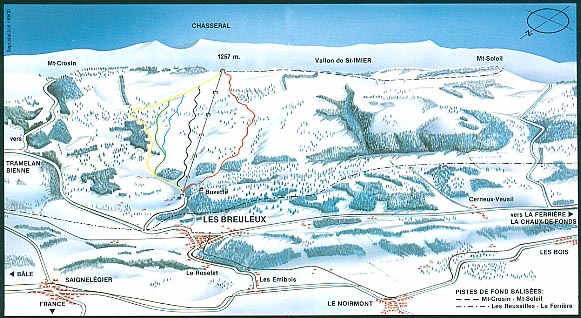 Les Breuleux is a small ski resort in the Jura mountains of Switzerland, located approximately 20 km from La Chaux-de-Fonds. It offers 10 km of slopes and a single ski lift with 221 meters of vertical descent. Les Breuleux is suitable for beginners and intermediate skiers, with a limited range of terrain and a small vertical drop. The resort is located at an altitude of 1038 meters above sea level and is accessible by car or public transportation.
