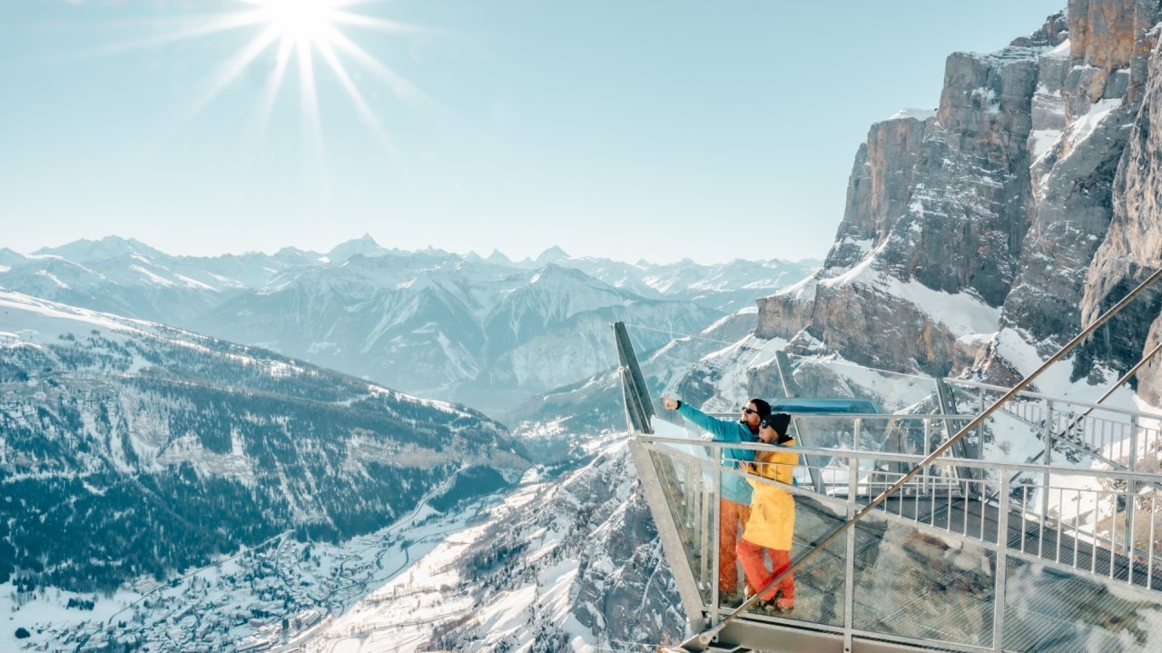 Leukerbad - Gemmipass is a mountain resort in Leukerbad, Switzerland, offering a range of activities including skiing, hiking, and cross-country skiing. The Gemmi Pass cable car provides panoramic views of the highest Swiss peaks, while the 12km cross-country trails offer diverse routes for all skill levels. The resort also features 50km of slopes, serviced by eight ski lifts, and a variety of hotels and accommodations. The Gemmi Pass is a historic crossing point between Leukerbad and Kandersteg, accessible by mountain rail.