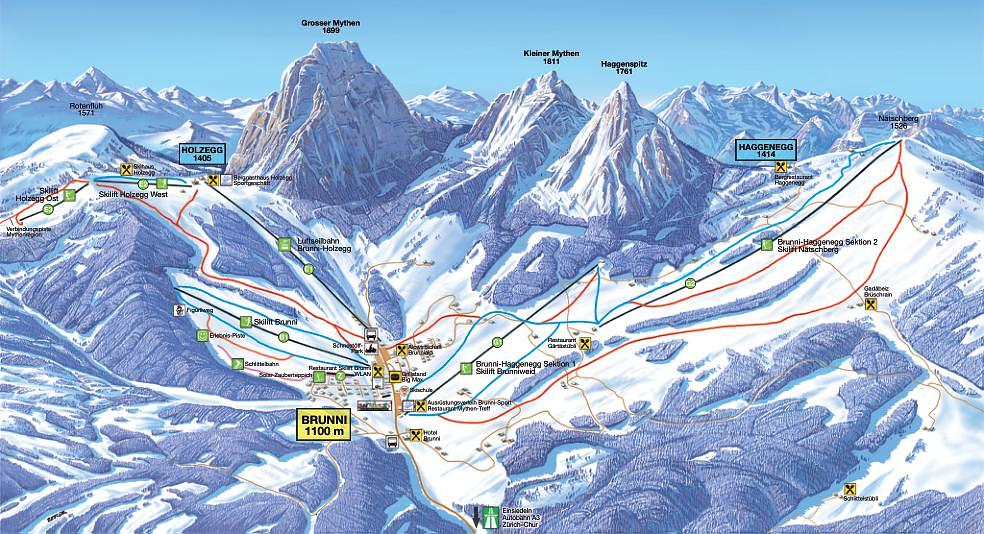 The Mythenregion ski resort in Alpthal, Switzerland, offers a diverse skiing experience with 55 kilometers of slopes and 24 ski lifts. The resort features a unique freestyle park, a children's park, and magic carpets for young guests. The area is accessible from all directions, with spacious postal coaches connecting the railway station to the ski resort. The Mythenregion is suitable for winter sports enthusiasts of all ages, with sunny slopes, enchanted forest pistes, and challenging ski safaris.