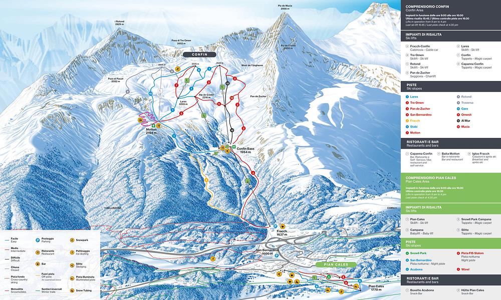 San Bernardino - Pian Cales ski resort in Mesocco, Switzerland is a hidden gem for skiers and snowboarders. With 40km of pistes up to 2530m altitude, it offers something for all levels, from beginners to experts. The resort features two ski lifts in the village center, sunny and well-groomed slopes, and a T-bar lift. The area is surrounded by a breathtaking landscape and offers a variety of activities, including hiking and glacier exploration. The resort has a family-friendly atmosphere, with plenty of accommodation options and rentals available.