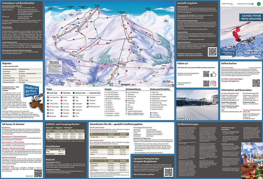 Savognin is a ski resort in the Surses region of Switzerland, offering wide and open slopes with up to 11 km length and 1,500 m elevation. The resort is suitable for skiing and snowboarding, with a variety of slopes for all levels. It's a relatively unknown destination, perfect for adventurous families, and offers a range of amenities, including a funpark and kids' slopes.