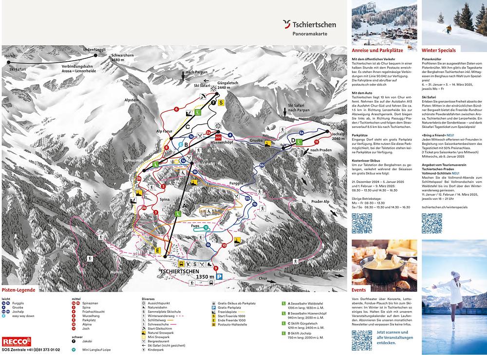 Tschiertschen is a charming ski resort in southeast Switzerland, nestled in the Schanfigg valley near the village of the same name. It offers 32 km of slopes, 10 pistes, and 4 lifts, making it suitable for beginner and intermediate skiers. The resort boasts reliable snow cover and stunning views, with a relaxed atmosphere far from the hustle and bustle. Tschiertschen is easily accessible by car from Chur, just 11 km away, and offers a range of accommodation options, including ski-in/ski-out hotels.