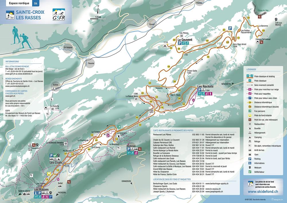 Here's a 50-100 word summary of Sainte-Croix - Les Rasses: Located in the Jura mountains of Switzerland, Sainte-Croix - Les Rasses is a medium-sized ski resort with 20 km of prepared slopes and 9 ski lifts. The resort spans 8 hectares at an altitude of 1,150-1,580 meters, offering a vertical drop of 430 meters. It's suitable for families and beginners, with two lifts dedicated to easy slopes. The resort is a cross-country skiing paradise in winter and a popular destination for rambling and cycling in summer. The area offers a range of accommodations, including hotels and vacation rentals.