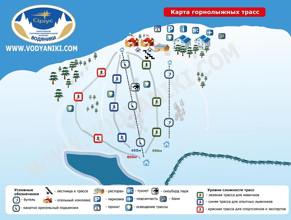Vodyaniki is a ski resort located in the Cherkasy Oblast region of Ukraine. It features 1 km of slopes for skiing and snowboarding, with a 4-chairlift and ski lift from Austria. The resort has three ski slopes for beginners, intermediate, and springboarders. Vodyaniki is a popular destination for skiing and snowboarding, with a range of amenities and activities available.