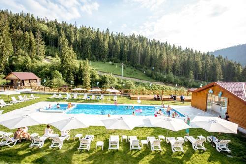 Zahar Berkut is a ski resort and recreation complex located in the Carpathian Mountains, Ukraine. It offers 9 km of slopes for skiing and snowboarding, with 5 lifts, including a chairlift. The resort is situated near the village of Slavske and provides a range of amenities, including a hotel, cable car, and hiking trails. It's a popular destination for winter sports and summer hiking, with a summit cafe at the top of the mountain.