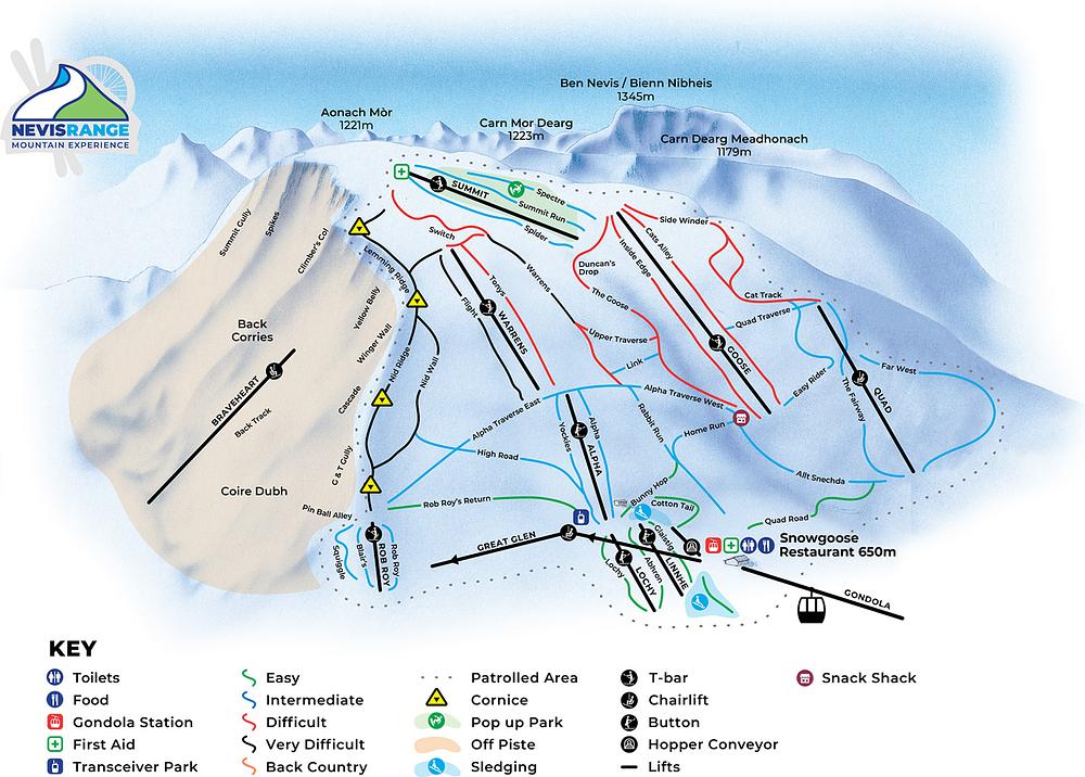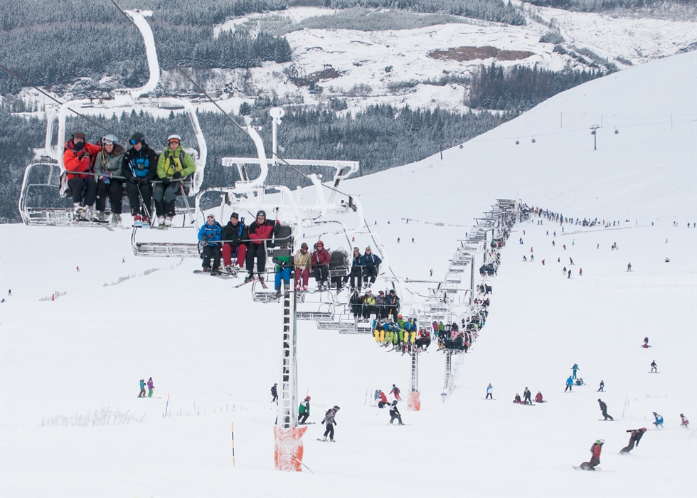 Nevis Range, located in the Scottish Highlands, is a popular ski resort that offers a range of activities including skiing, snowboarding, mountain biking, and hiking. The resort features a modern lift system, including a six-person gondola, and 20 km of north-facing slopes. With a summit elevation of 1,190 meters, Nevis Range is Scotland's highest resort, offering breathtaking views of the surrounding mountains. The resort is open year-round, with summer activities including mountain biking, tree-climbing courses, and scenic gondola rides.