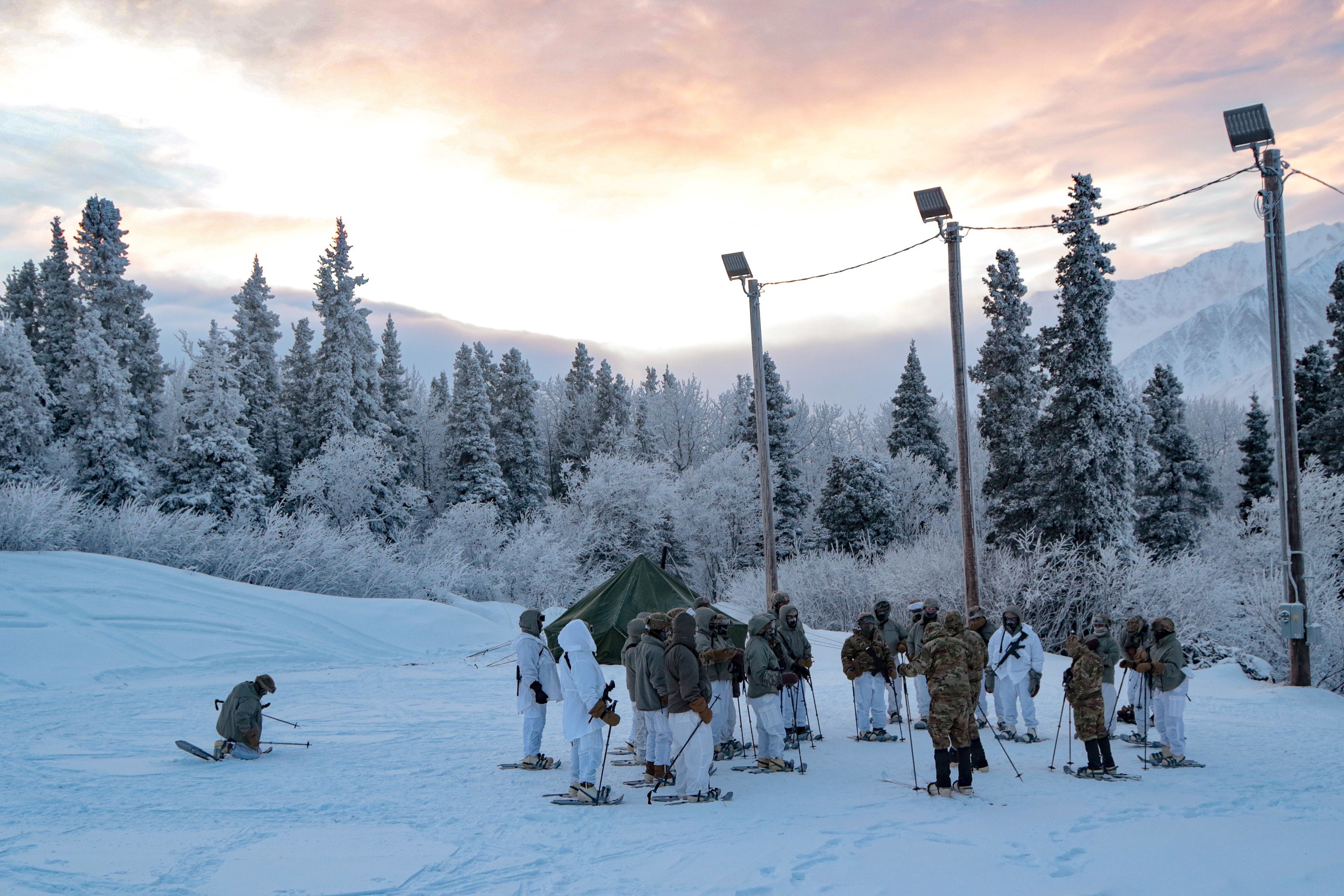 The Northern Warfare Training Center is a US Army facility in Alaska that provides specialized training in cold weather and mountain warfare to enhance the war-fighting capabilities of US and coalition forces. The center offers courses such as the Basic Military Mountaineering Course, which teaches soldiers fundamental knowledge and skills for conducting small-unit operations in mountainous terrain. The training center also conducts ski mobility training, cross-country snowshoe treks, and other Arctic-specific training exercises.