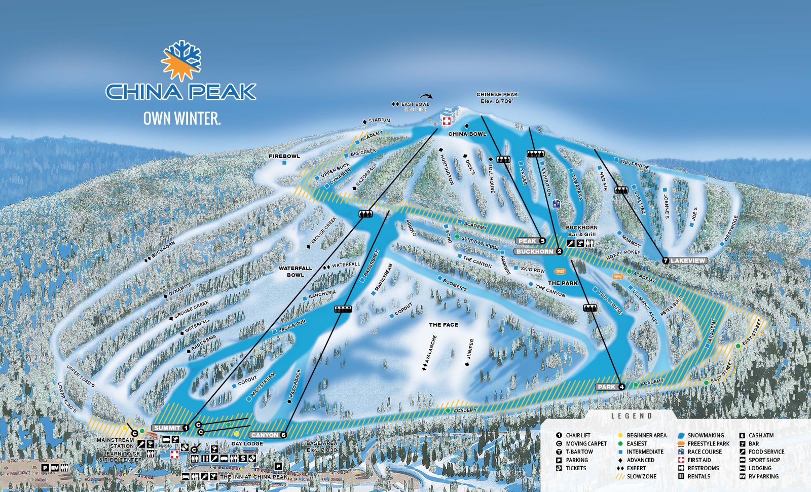 China Peak Mountain Resort is a ski resort located in Central California, near Fresno, at an elevation of 8,700 feet. It offers 54 trails, with a longest run of 2.25 miles, and receives 300 inches of snowfall annually. The resort is known for its family-friendly atmosphere, with live music and eateries, and is a great option for day skiers from the Central Valley. While it's smaller than some other resorts, China Peak provides a big Sierra experience close to home, with a vertical rise and terrain comparable to many Lake Tahoe resorts.