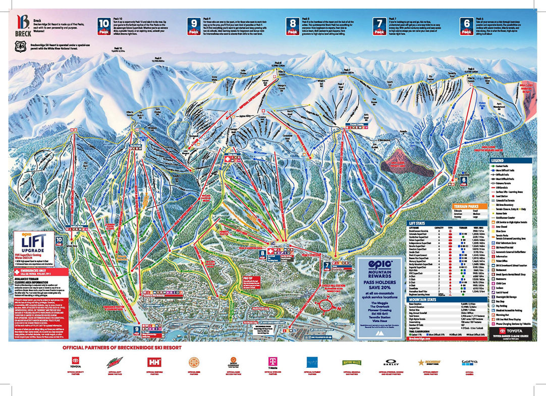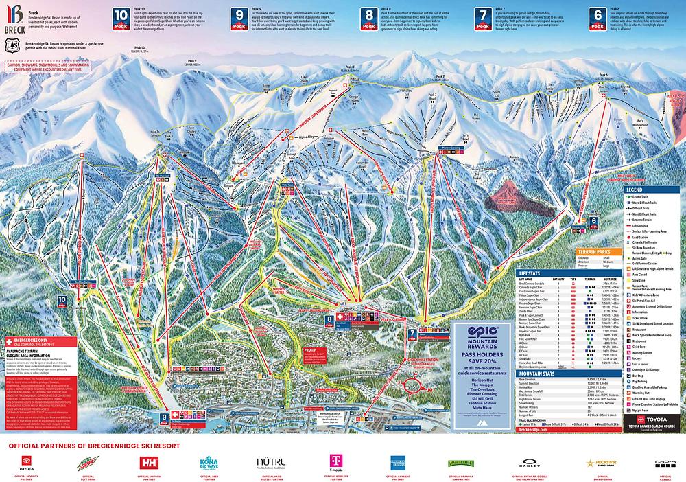 Breckenridge, Colorado, is a world-class ski resort boasting 2,908 acres of skiable terrain across five peaks, with 187 trails, four terrain parks, and two high-speed six-passenger SuperChairs. It offers a top-notch Ski & Ride School, the highest chairlift in North America, and a variety of runs for all skill levels. The resort also features a lively town with a range of dining options, from pizza to Italian to Mexican and steaks. With its expansive terrain and lively atmosphere, Breckenridge is a premier destination for skiing, snowboarding, and mountain recreation.