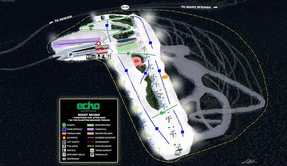 Echo Mountain is a ski resort located in Clear Creek County, west of Evergreen, Colorado. It's the closest ski area to Denver, offering an affordable and accessible experience for skiers and snowboarders of all levels. The resort features a tubing hill, expanded beginner area, and a variety of trails for intermediate skiers. Echo Mountain offers rentals, lessons, and a restaurant, making it a great destination for families and groups. With its convenient location and welcoming atmosphere, Echo Mountain is an ideal spot for a day trip or a longer stay.
