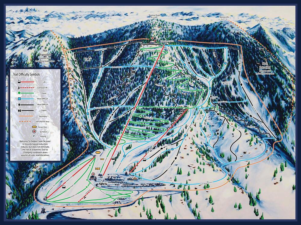 Pebble Creek is a family-friendly ski resort in southeastern Idaho, offering a range of trails for beginners to advanced skiers. With 54 trails and a 2,200-foot vertical drop, it's a smaller but still exciting destination. The resort features lessons, rentals, and weekend night skiing, making it a great option for those looking for a more intimate skiing experience.
