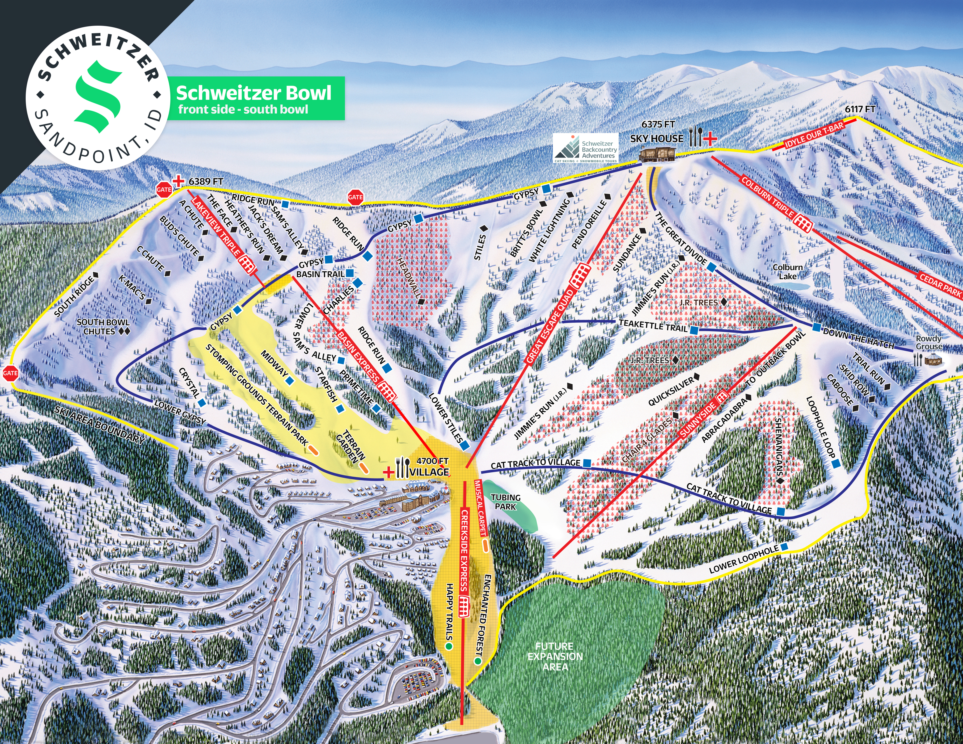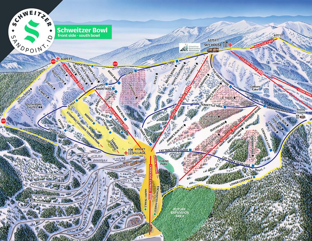 Schweitzer Mountain Resort is a top-rated ski resort in Idaho, boasting 2,900 acres of skiable terrain. Located in the Selkirk Mountains, it offers a mix of high-angle groomers, gladed tree runs, and wide-open bowl skiing and riding. The resort is known for its family-friendly atmosphere, with plenty of activities and amenities, including a spa, restaurants, and kid-friendly activities. With its stunning views of the surrounding town, Schweitzer Mountain Resort is a must-visit destination for outdoor enthusiasts and families alike.
