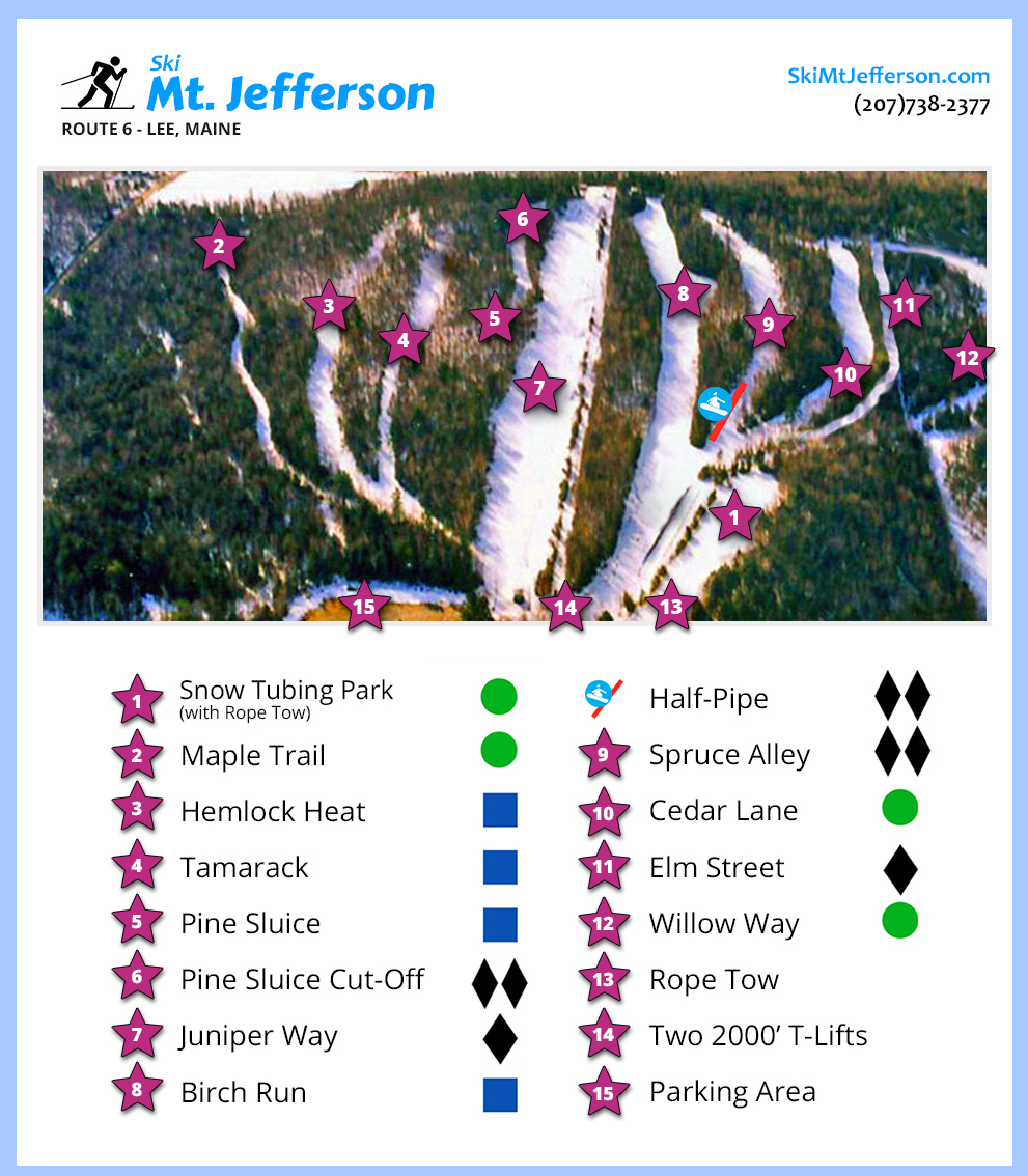 Mt. Jefferson Ski Area in Lee, Maine, is a family-friendly ski resort with 12 trails, including two novice, three intermediate, and six difficult/more difficult runs. The resort offers skiing, snowboarding, and tubing, with 9.5 km of slopes available. With a 2.5-star rating, it's a hidden gem for old-school Maine skiing, perfect for families and those seeking a more laid-back experience.