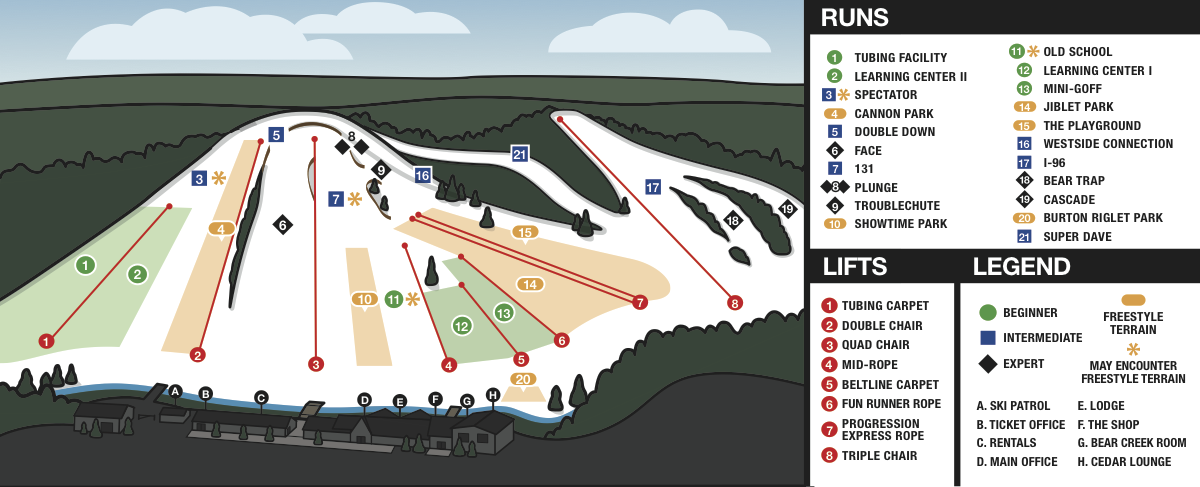 Cannonsburg Ski Area in Belmont, Michigan, is a small downhill ski resort that offers a variety of winter activities, including skiing, snowboarding, tubing, and fat biking. In the summer, visitors can enjoy a zip line and hiking trails. The resort features 22 trails, a state-of-the-art tubing facility, and a restaurant with a full-service bar. With a vertical drop of 250 feet, Cannonsburg has the highest vertical in southwestern Michigan, making it a popular destination for outdoor enthusiasts.