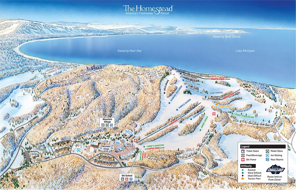The Homestead is a four-season resort located on the shores of Lake Michigan, near Sleeping Bear Dunes National Park in Glen Arbor, Michigan. It offers a range of activities, including skiing, snowshoeing, golf, and water sports. The resort features a sandy beach, pools, tennis courts, and a variety of accommodations, including hotel rooms and vacation rentals. Guests can enjoy scenic views of Lake Michigan and the surrounding woods, and the resort offers a range of amenities, including a fitness center, spa, and restaurant.