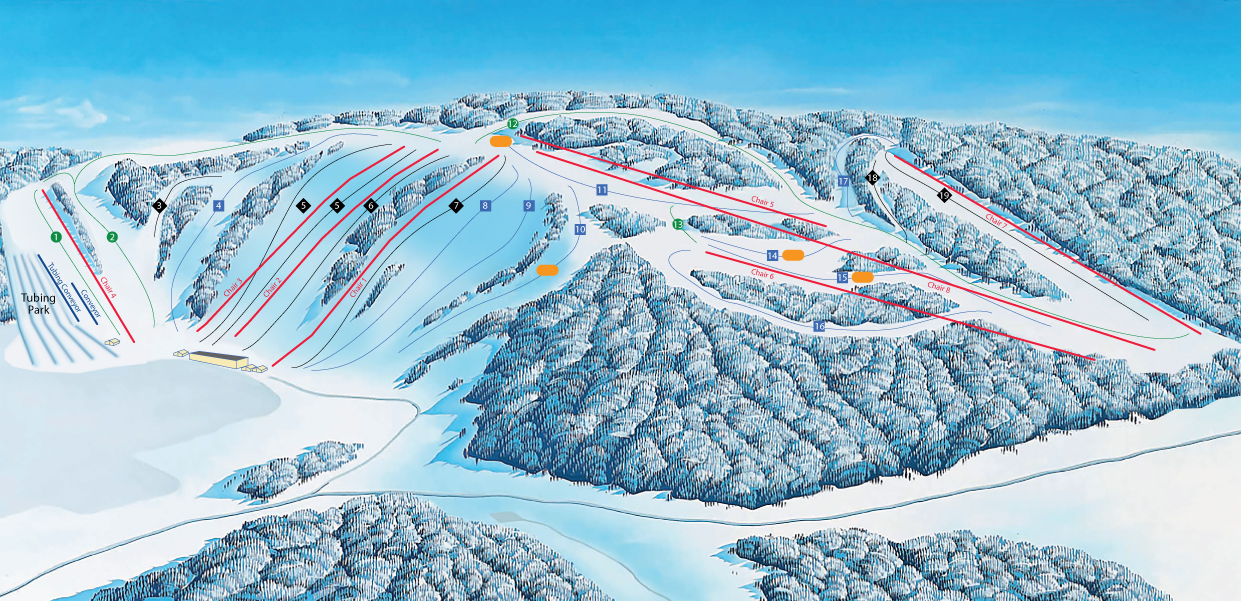 Mount Kato Ski Area is a winter sports facility located just south of Mankato, Minnesota, in the scenic Minnesota River Valley. It offers 19 trails on 55 acres with a 240-foot vertical drop, catering to skiers and snowboarders of all levels. The resort also features snow tubing, equipment rentals, and a chalet. In the summer, it offers mountain biking. With a variety of lessons and a large selection of equipment rentals, Mount Kato is a great destination for families and winter enthusiasts.
