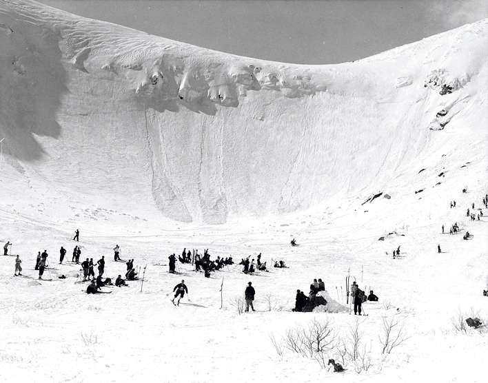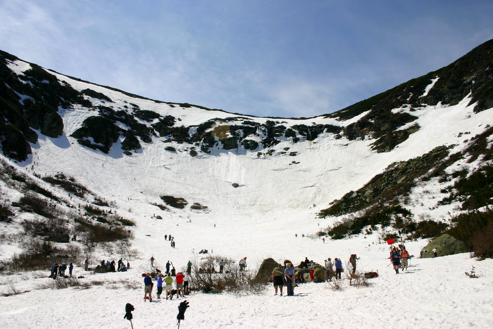 Tuckerman Ravine is a glacial cirque on the east side of Mount Washington in New Hampshire, offering steep, bowl-shaped terrain with runs that range from 40-55 degrees. The area is known for its deep snow drifts, crevasses, and avalanche risk, making it a challenging destination for skiing and hiking. With its rich history as the birthplace of extreme skiing in the US, Tuckerman Ravine attracts expert skiers and hikers who seek adventure and breathtaking views.