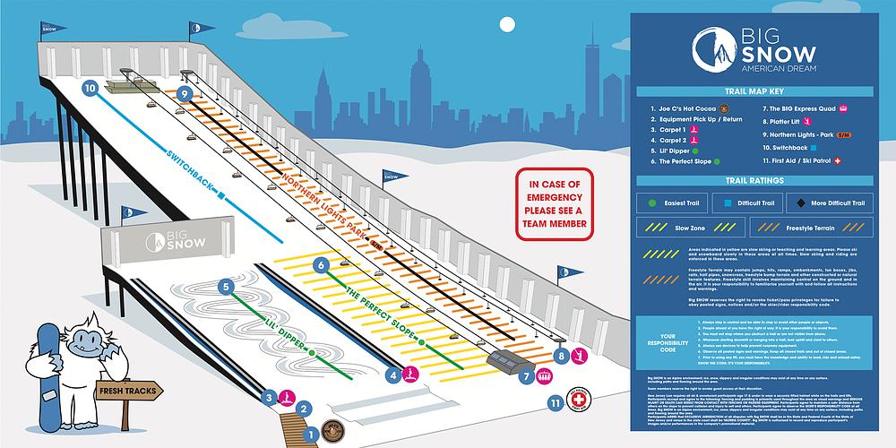 Big Snow American Dream is an indoor skiing and snowboarding park located within the American Dream shopping and entertainment complex in East Rutherford, New Jersey. It's the first indoor ski park in North America, offering year-round skiing and snowboarding on real snow. The resort features three trails, a quad lift, and two magic carpets, with a longest run of 1,000 feet. It's open daily and offers lessons and bunny slopes for beginners. Reviews praise its unique concept and fun atmosphere, but some criticize the service and management.