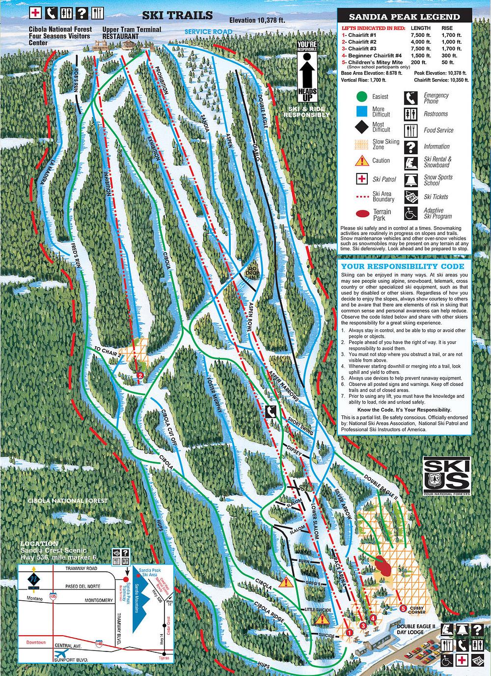 Sandia Peak Ski Area, located in the majestic Sandia Mountains just 35 miles northeast of Albuquerque, New Mexico, offers a welcoming, family-friendly atmosphere perfect for beginners and families. With 35 trails and a vertical drop of 1,700 feet, it's a great destination for skiers and snowboarders of all abilities. The resort boasts a 60-person aerial tram, providing easy access to the slopes, and a variety of amenities, including a restaurant, gift shop, and rentals. The scenic views of the Cibola National Forest are a bonus, making it a must-visit destination for outdoor enthusiasts.