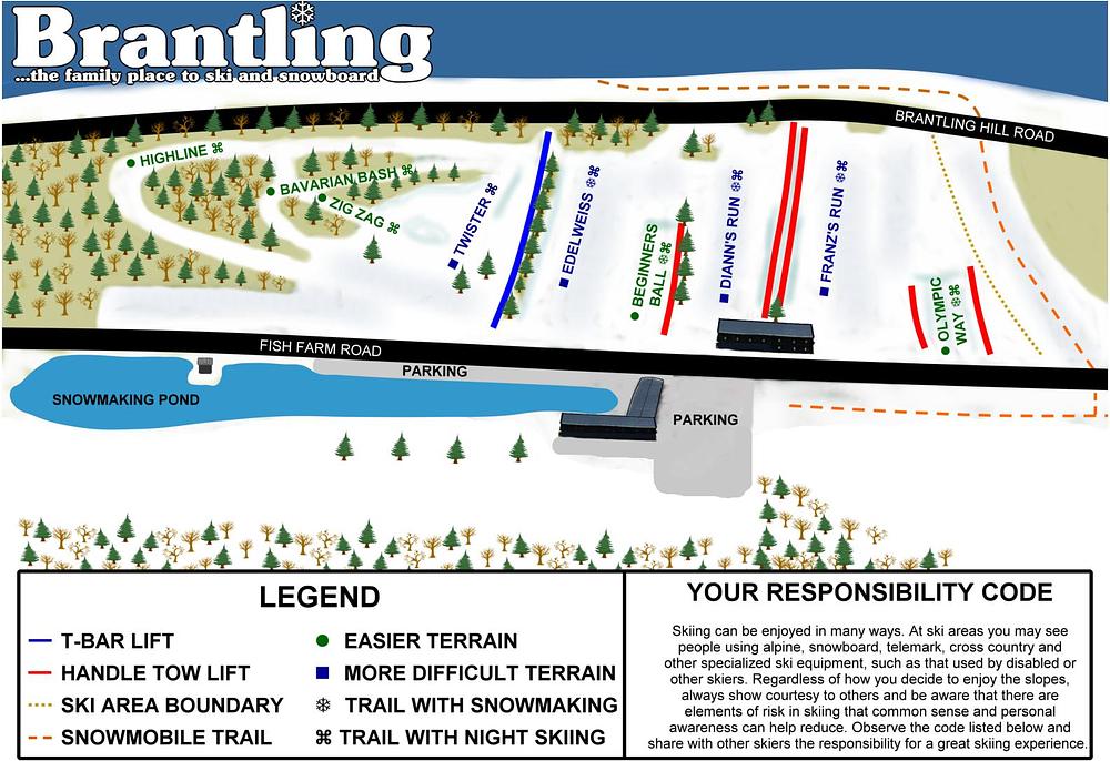 Brantling Ski Slopes is a small, family-owned and operated ski area in Sodus, NY, offering 10 trails serviced by 5 surface lifts. It's known for its family-friendly atmosphere and instructional ski and snowboard lessons. The resort features 9 slopes and trails, including some lit for night skiing. With a focus on value pricing and quality instruction, Brantling is a great destination for beginners and families.