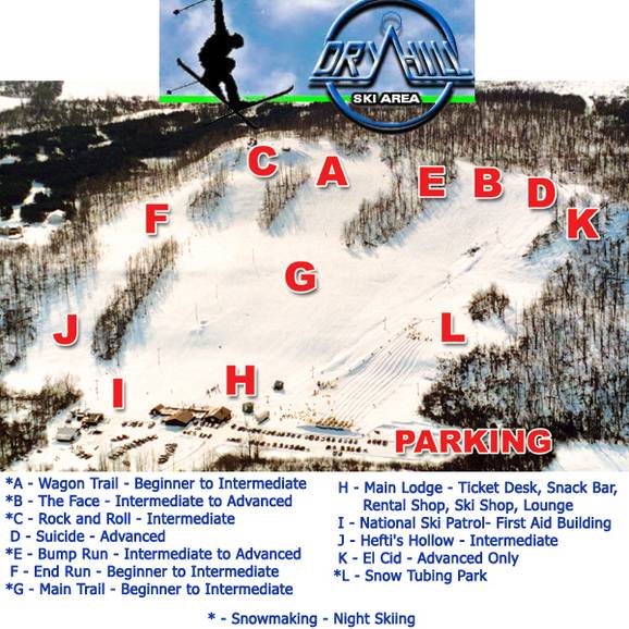 Dry Hill Ski Area is a family-friendly ski resort located in Watertown, New York, offering 7 trails with 50% snowmaking capabilities and night skiing. The resort features a Fireside Lounge, live music, and a variety of lessons and rentals. With a focus on beginner and intermediate skiers, Dry Hill has a relaxed, rustic atmosphere and decent prices. The resort is open from 10am-6pm, with tubing hours from 12-4pm.