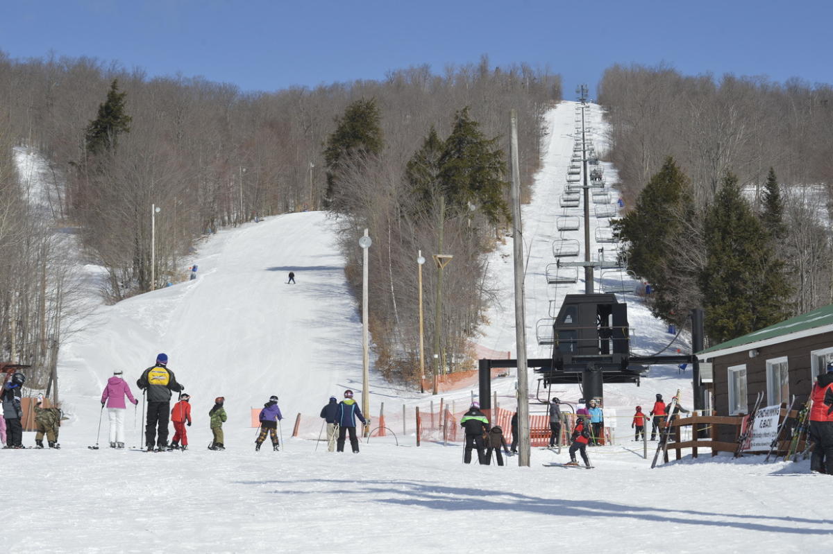 Oak Mountain Ski Center is a family-friendly ski resort in the Adirondacks, offering 230 acres of skier and rider accessible terrain on a 2,400-foot mountain. The resort features varied terrain for all skill levels, including a terrain park, glade skiing, and night skiing. Visitors can enjoy skiing, snowboarding, and snow tubing, as well as a restaurant, bar, and live music. With a quad chairlift and two T-bars, Oak Mountain provides an affordable and fun experience for skiers and snowboarders of all ages.