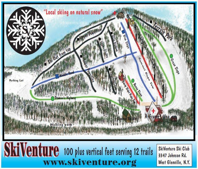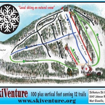 Ski Venture is a family-oriented ski cooperative located in West Glenville, New York, offering local skiing on natural snow. Established in 1937, it's one of the oldest club-operated ski areas in the region. The resort features a 110-foot ski hill, a bunny slope, and easy rope tows, making it an ideal spot for beginners and families.